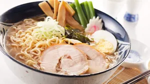 Ramen is one of the most popular foods in Japan - as a snack, a street food offering or an elegant restaurant dish. Ramen noodles are made with wheat, salt, water and alkalinised water called kansui. They come in different lengths, shapes and thicknesses. Some are straight; others are curly. Ramen noodles are served in a meat or vegetable broth seasoned with soy sauce or miso paste. Toppings include thin strips of pork belly (chāshū), dried seaweed (nori), a scattering of bamboo shoots (menma) and spring onions. There are many regional variations on this delicious noodle dish.