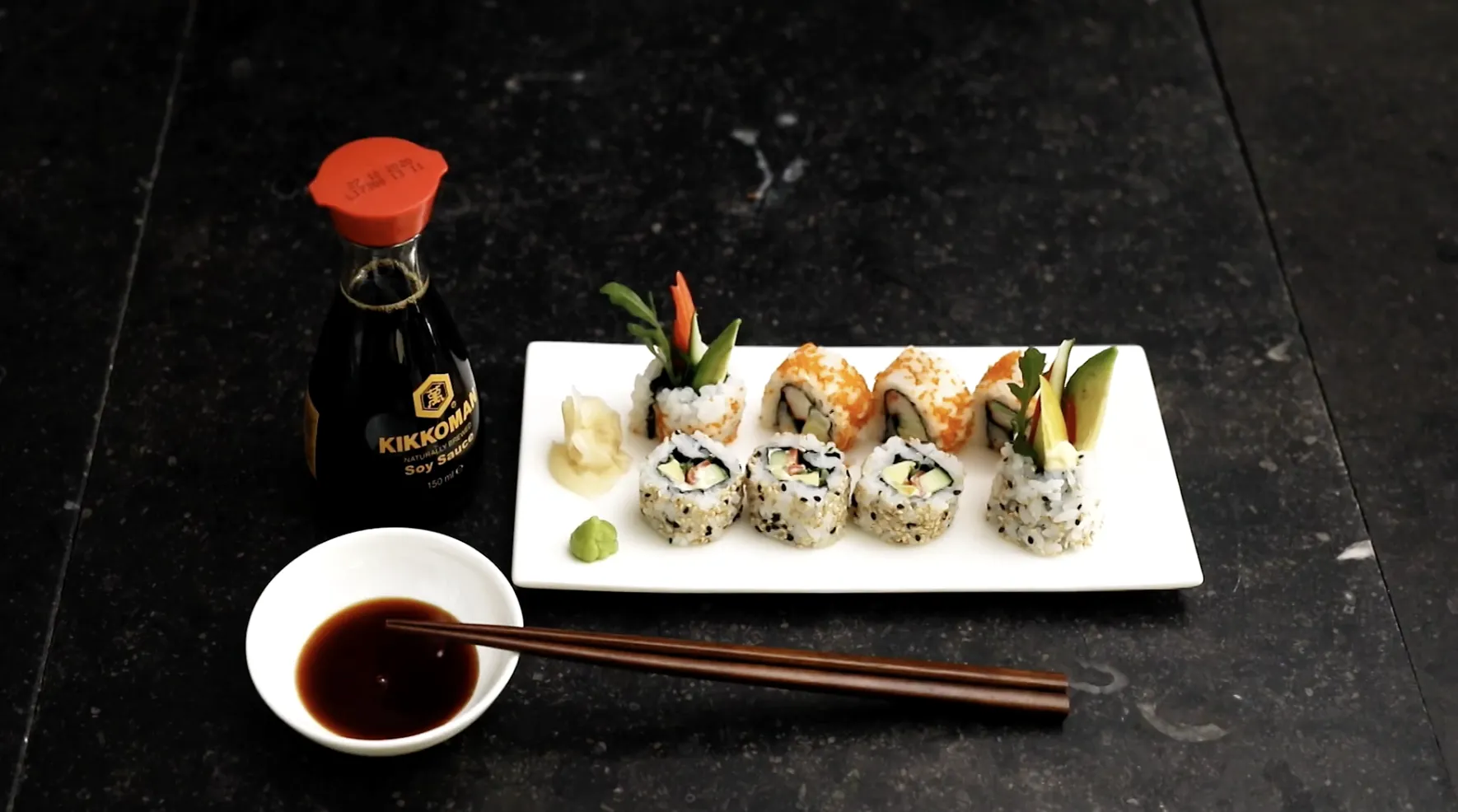- Kikkoman Soy Sauce or Kikkoman Sushi and Sashimi Soy Sauce