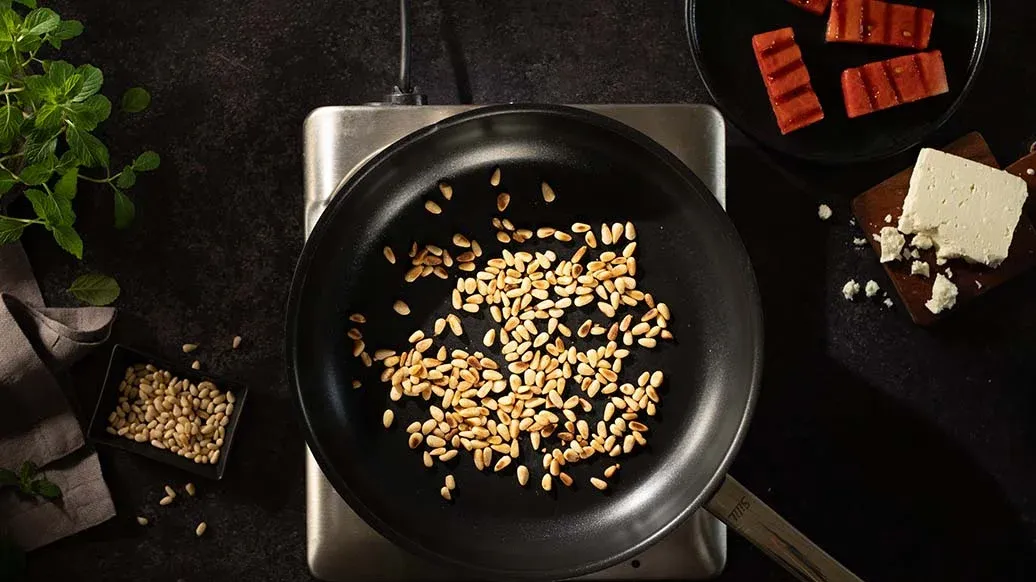 1 tbsp pine nuts – 75 g feta cheese – 2 sprigs mint