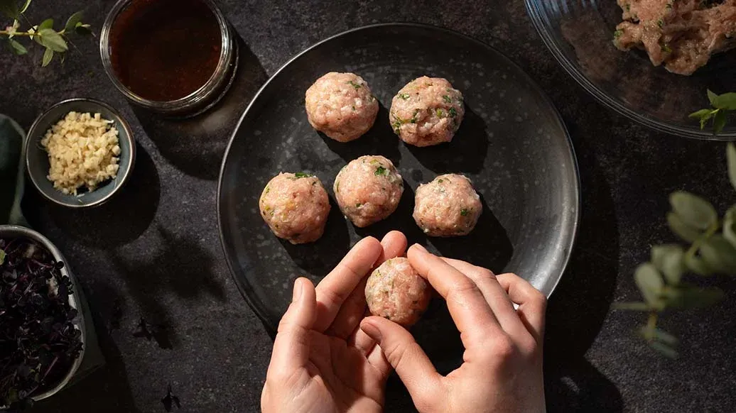 The juiciest and most flavoursome chicken teriyaki meatballs on the planet. The secret lies in the combination of roasting and braising. They're perfect with rice in the conventional way – or with udon noodles for an Asian take on spaghetti and meatballs.