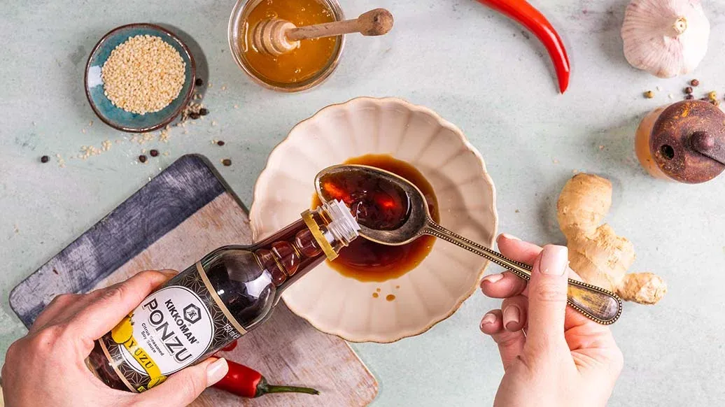 75 ml Kikkoman Ponzu Citrus Seasoned Soy Sauce - Yuzu – 75 ml Kikkoman Ponzu Citrus Seasoned Soy Sauce - Lemon – 2 tbsp honey (or maple syrup) – 1 chilli, finely chopped – 1 tsp grated ginger