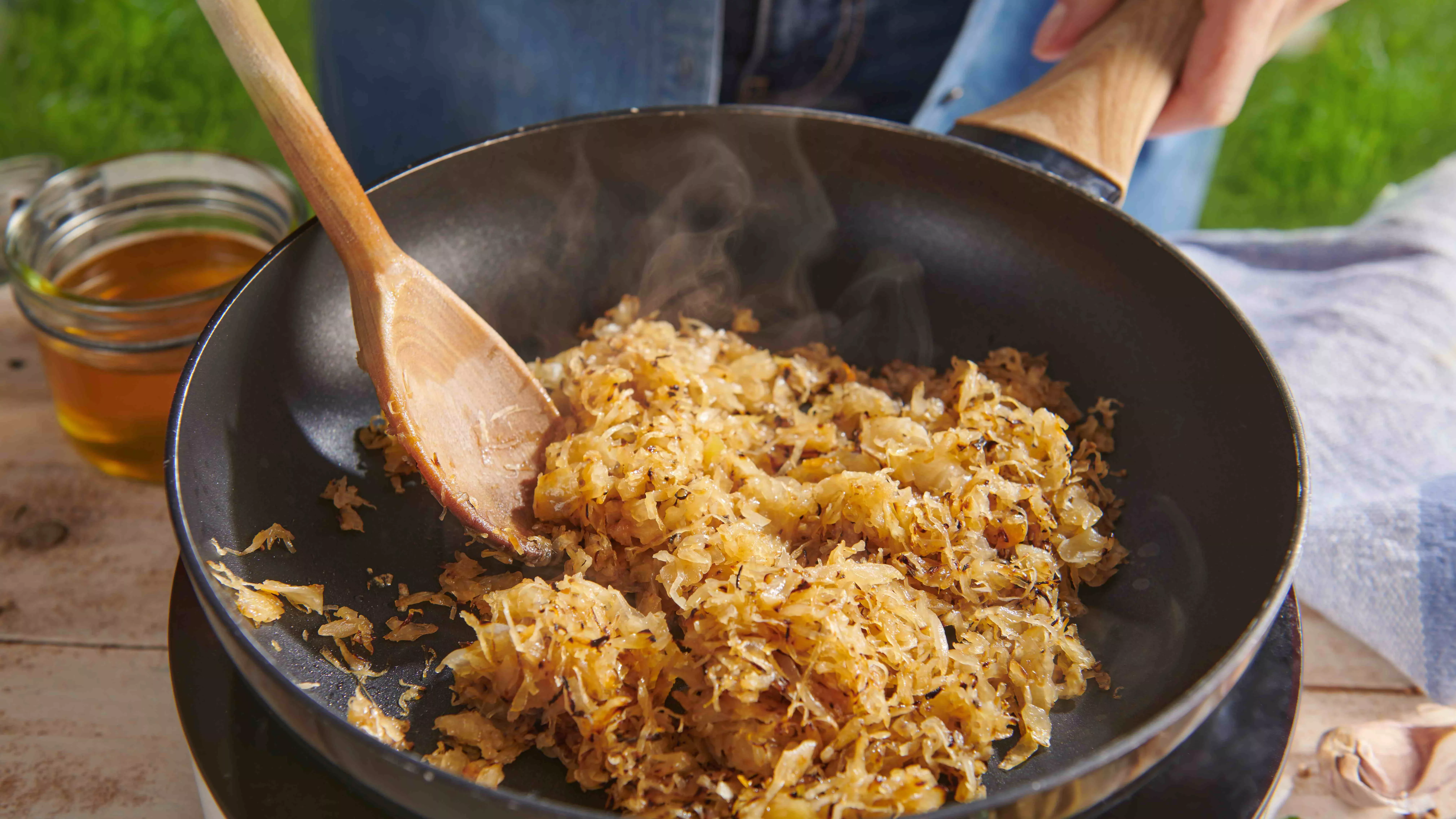 Fry the sauerkraut with the mustard and honey.