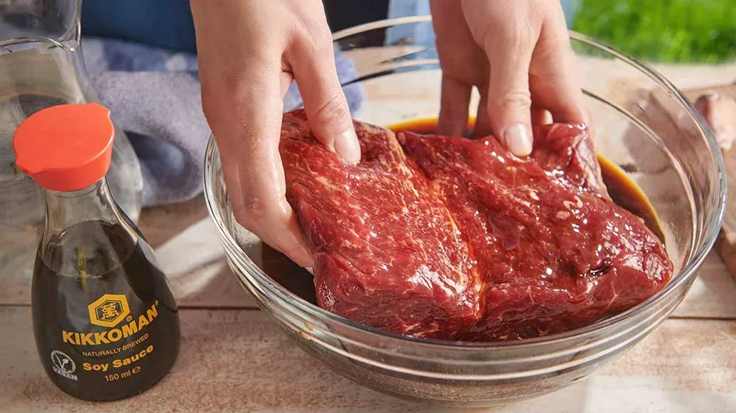 Mix the brown sugar, Kikkoman Soy Sauce, Kikkoman Mirin-Style Sweet Seasoning and water. Place the meat in the marinade and refrigerate for 1 - 2 days.