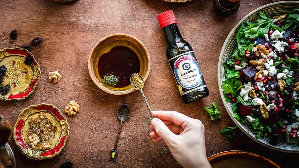 1 tbsp olive oil – 2 tbsp Kikkoman Naturally Brewed Soy Sauce – 1 tbsp agave syrup – 1 tbsp lemon juice – 1 tsp dried thyme – 1 tsp ground cumin