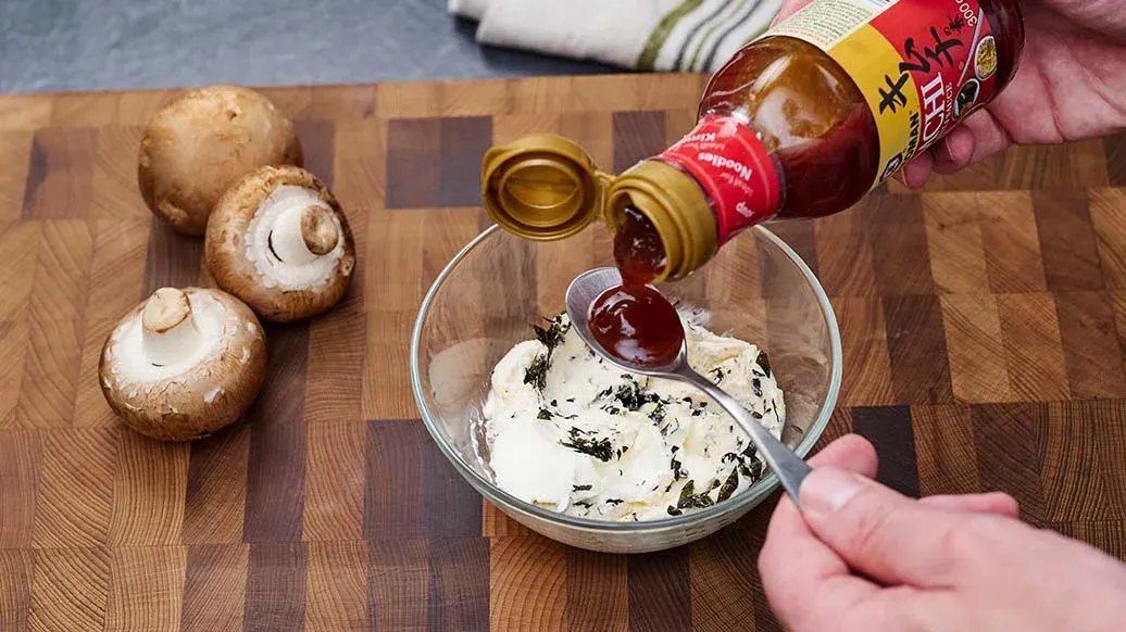 Finely chop the nori and mix with the cream cheese and Kikkoman Kimchi Chili Sauce.