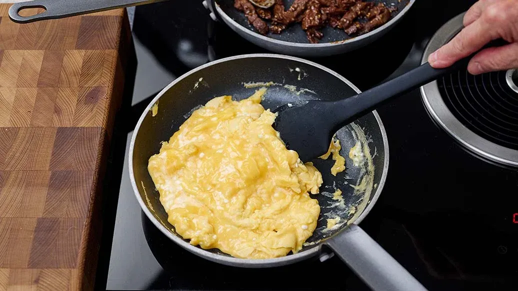 4 eggs – 2 tbsp cottage cheese – ½ tsp brown sugar – 1 tbsp Kikkoman Teriyaki BBQ Sauce with Honey & Smoky Taste – Freshly ground pepper – 1 tsp vegetable oil
