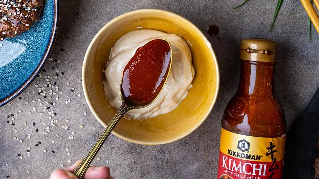 2 tbsp mayonnaise – 1 tbsp Kikkoman Spicy Chili Sauce for Kimchi – 1 tbsp chopped spring onions