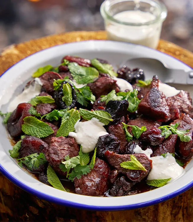 Tender lamb braised with dried apricots, prunes and raisins, served with creamy yoghurt mixed with Kikkoman Yuzu Ponzu.