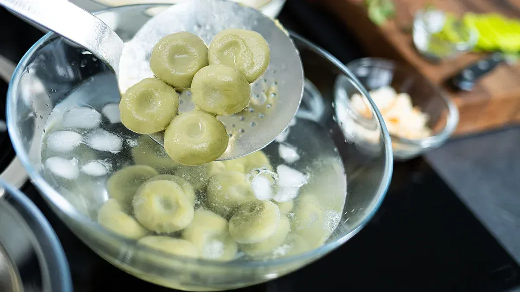 Cook the dumplings in plenty of boiling water for 5–7 minutes (see tip).