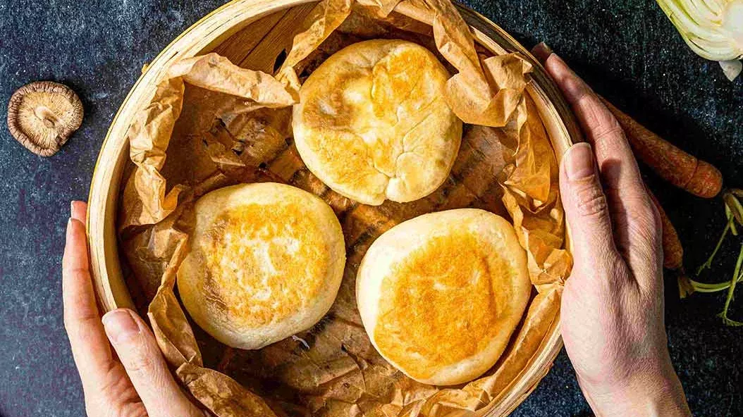 The dough and filling can be prepared the day before and stored in the fridge. Take the ingredients out of the fridge 30 minutes before preparing the buns so they reach room temperature. Then shape them, fry, and steam.