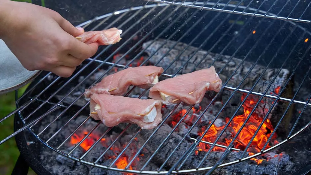 Grill the pork loin pockets for 3–4 minutes on each side on a barbecue or grill pan.