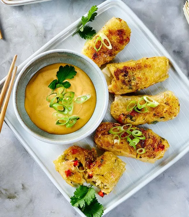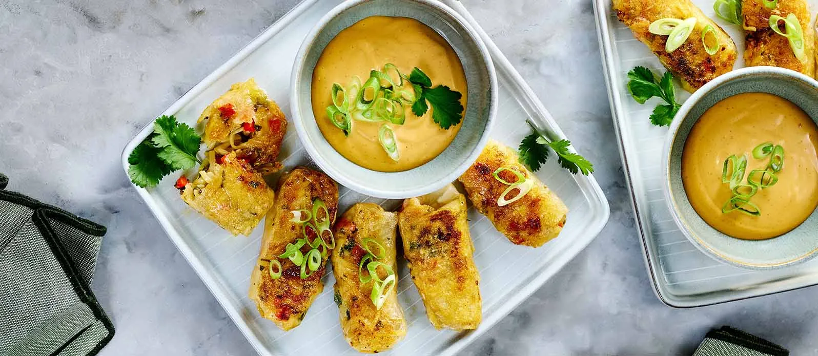 Quick, crisp rice paper dumplings filled with ramen, vegetables and cheese, seasoned with Kikkoman Kimchi Chili Sauce and Kikkoman Soy Sauce. Served with a creamy, spicy dip, they’re an easy, crowd-pleasing snack or light meal.