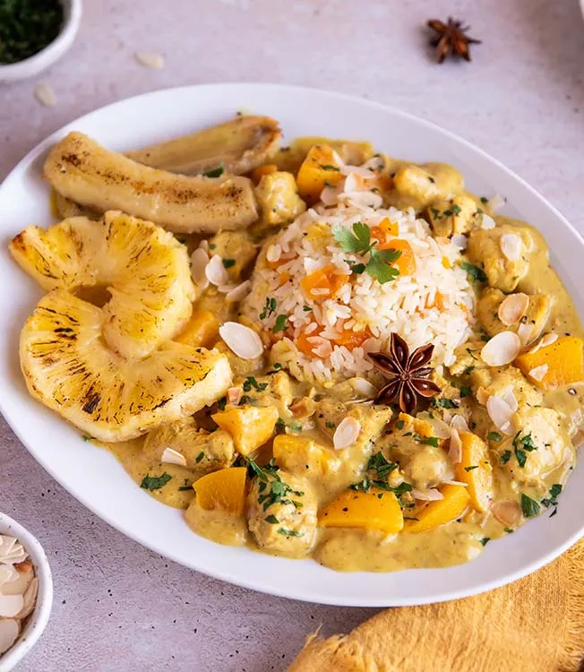 Riz Casimir—mild chicken curry with fruit