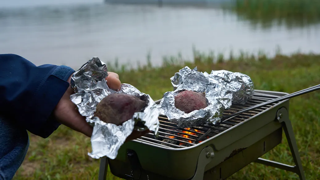 Wash the beetroot, wrap in foil and roast for 45-50 minutes on a barbecue until tender, or in the oven at 180–200°C.